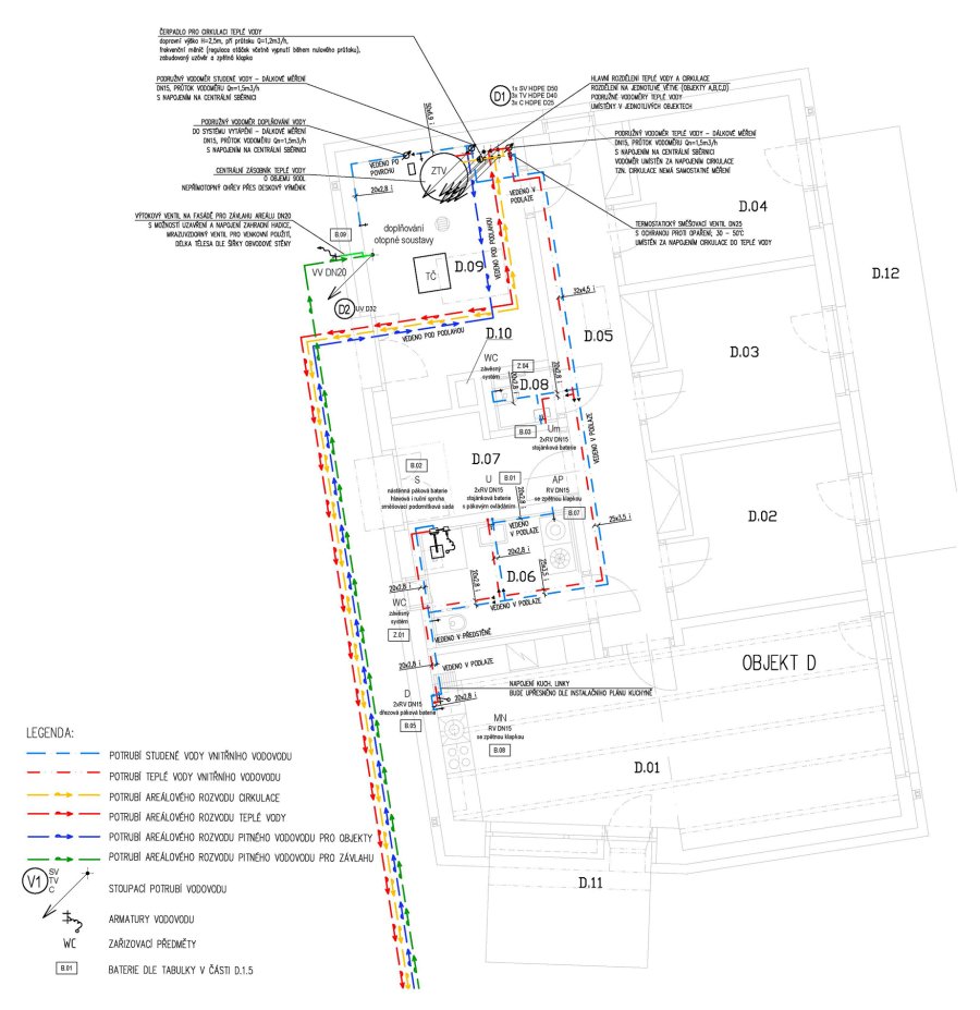 Návrh je proveden na základě architektonického návrhu společnosti NEUHÄUSL HUNAL s.r.o. a úzké spolupráce s touto společností, která zde mimo jiné zaujímá funkci HIP, zpracovatele architektonické části a interiérů.