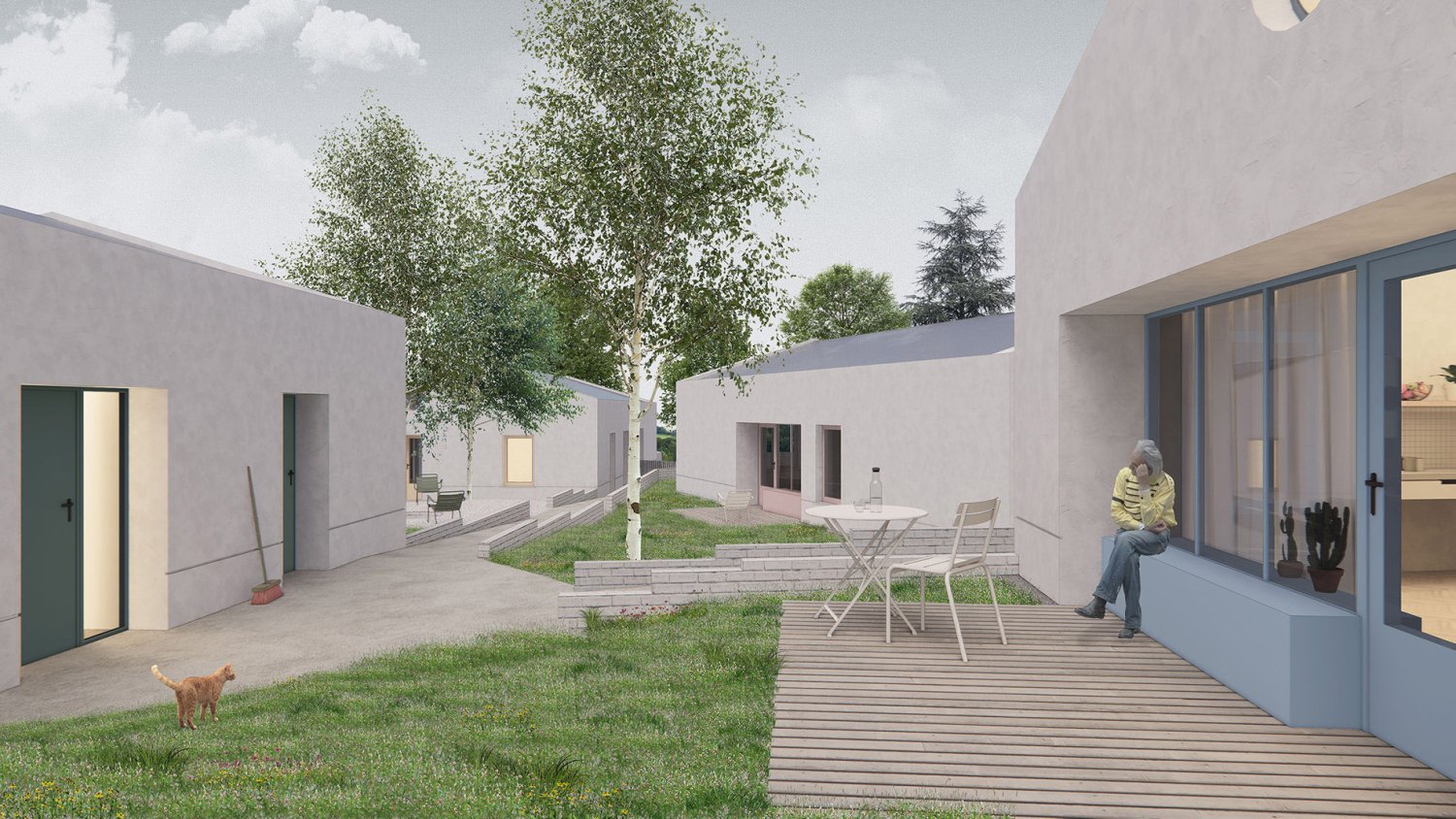 Stavebním záměrem je návrh areálu chráněného bydlení, který bude svým uspořádáním v maximální míře působit jako bydlení v rodinných domech. Základem jsou čtyři stavby občanské vybavenosti, které jsou však pojednány jako rodinné domy na společném pozemku. Areál jako celek je řešen bezbariérově.