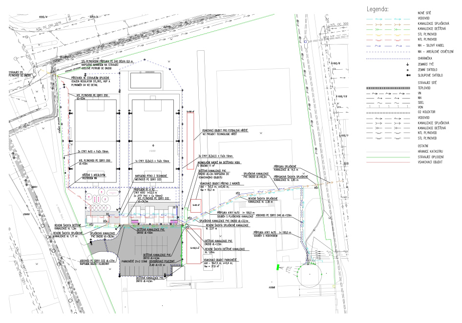 Naše kancelář Růžička a partneři s.r.o. zajišťovala koordinaci celého projektu, zpracovávala architektonicko-stavební část, zajišťovala konstrukčně stavební část, sadové úpravy, dopravní řešení a návrh technologie hřišť, a projektovala TZB v objektech a vnitřní a vnější inženýrské sítě.
