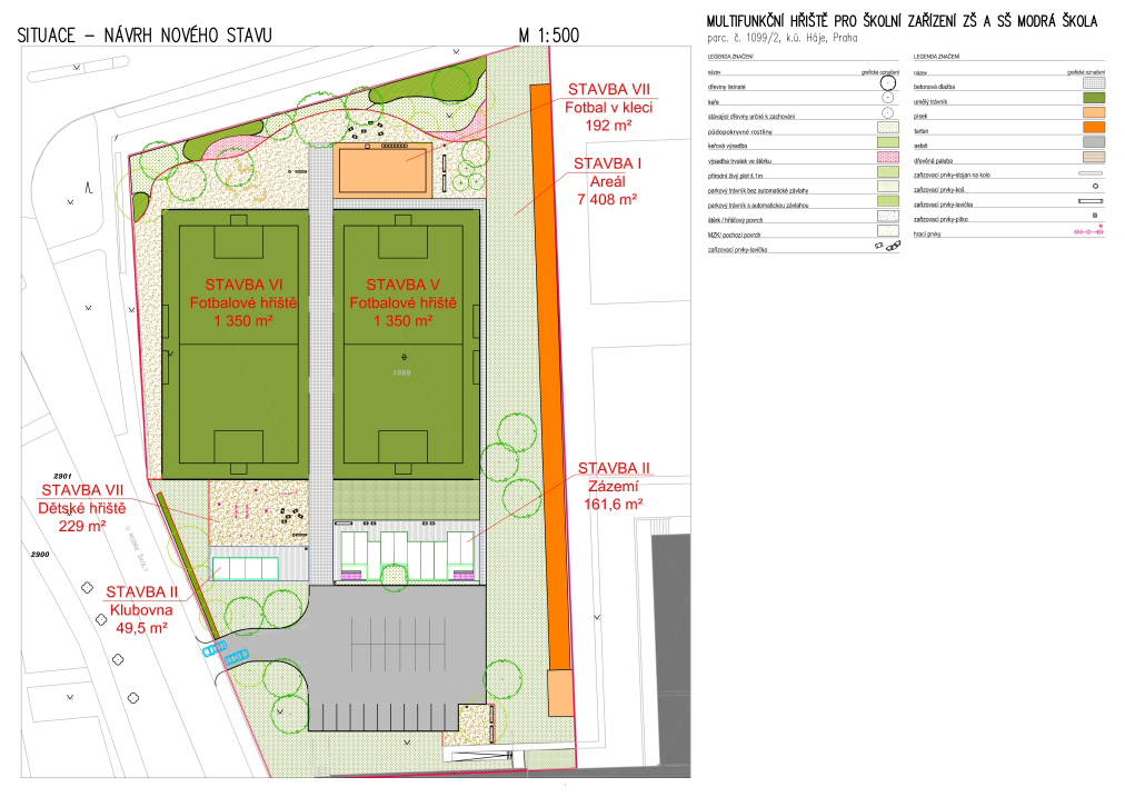 V areálu Základní a Střední školy Kupeckého 576 v Praze bylo navrženo nové sportovní zázemí pro školu. Zázemí je tvořeno dvěma hřišti pro malou kopanou, hřištěm pro fotbal v kleci, budovami zázemí a klubovny. Nový areál byl doplněn o komplexní řešení zeleně a dále o byl zpřístupněn pro dopravu tak, aby bylo možno areál případně využít i pro veřejnost. Budovy zázemí a klubovny jsou navrženy jako co nejjednodušší stavby ze stavebních buněk. Zázemí má dvě podlaží a je schopno zároveň pojmout dvě sportující třídy o 32 žácích. Do objektu bylo navrženo i veškeré technické zázemí, pohotovostní WC a místnost pro správce. Klubovna je navržena jako místo pro týmové porady a schůzky. Sportovci se zde zároveň mohou lehce občerstvit. Klubovna je doplněna o dřevěnou terasu - palubu, která bude mít využití především v teplých měsících.
