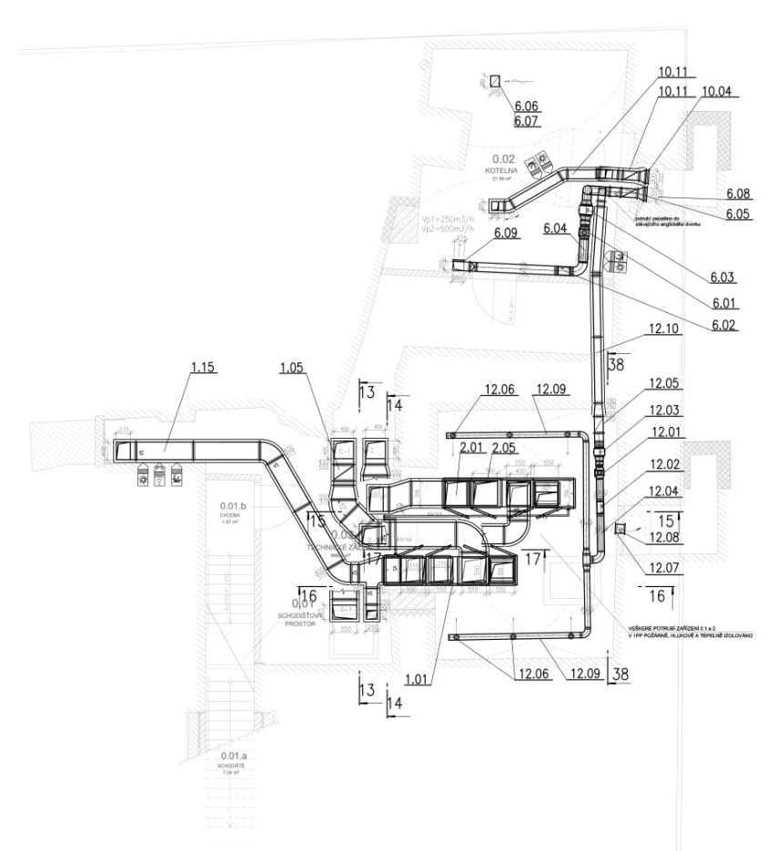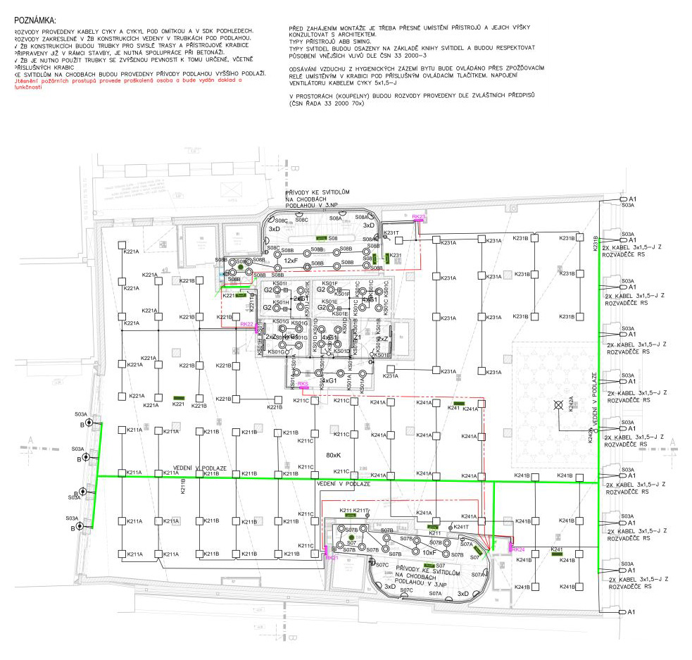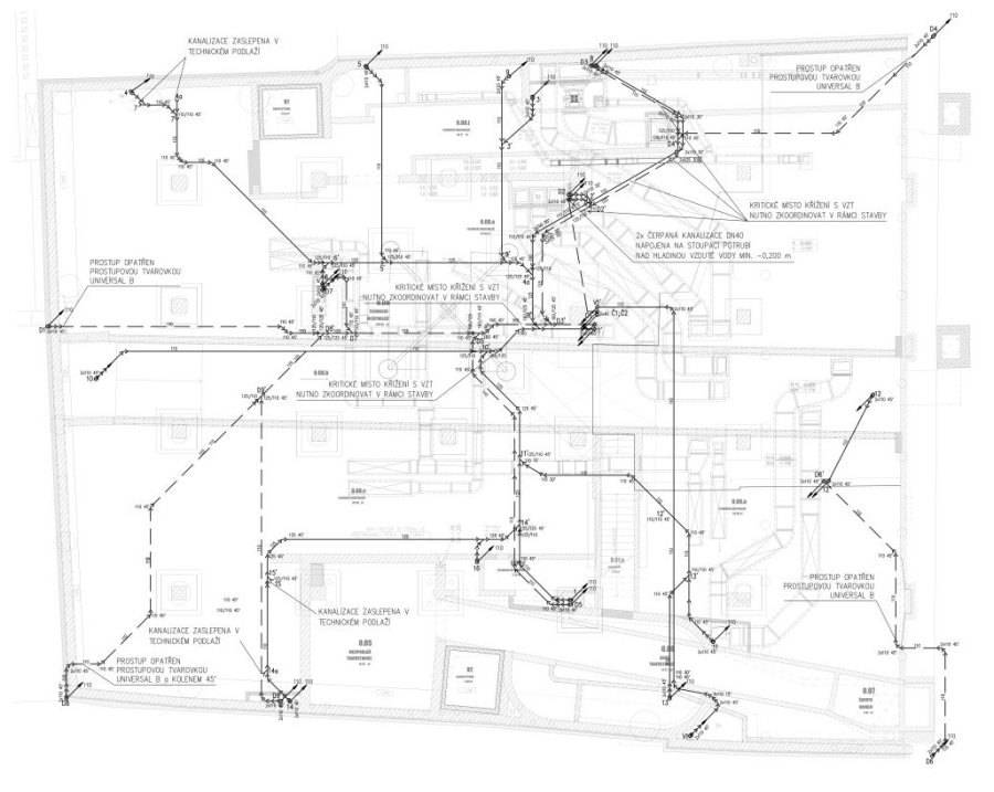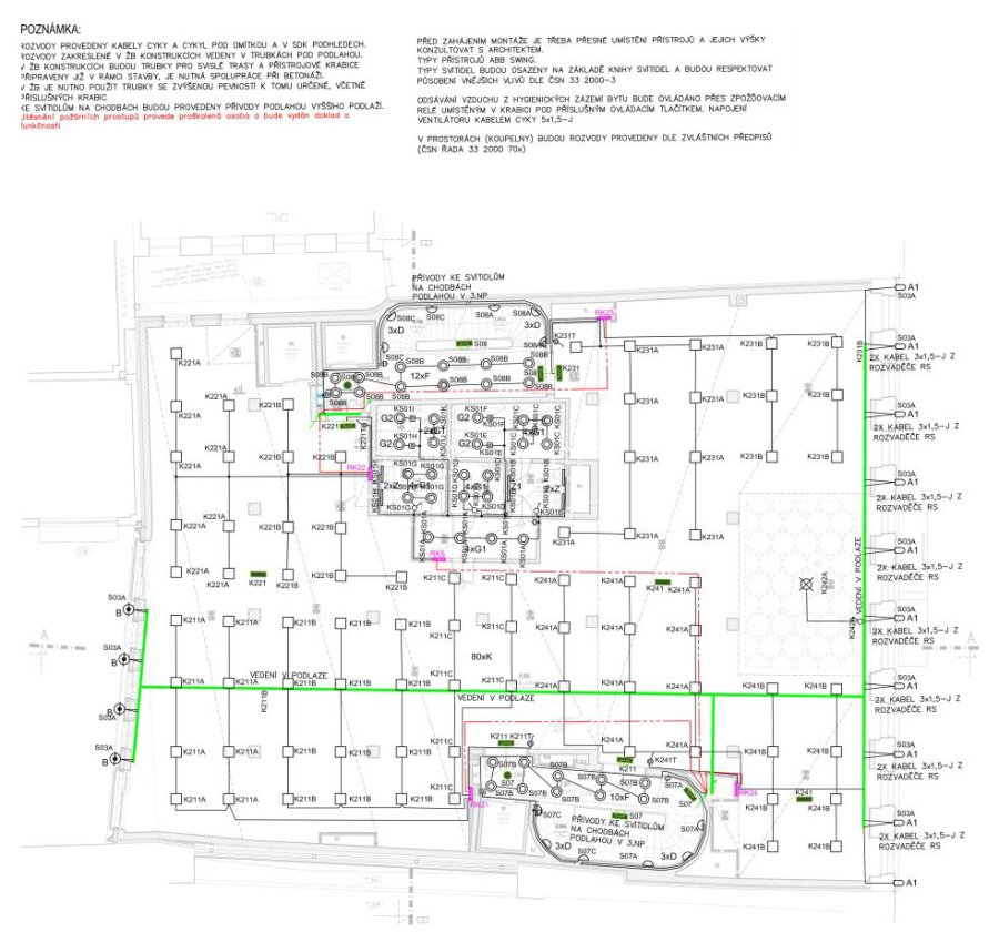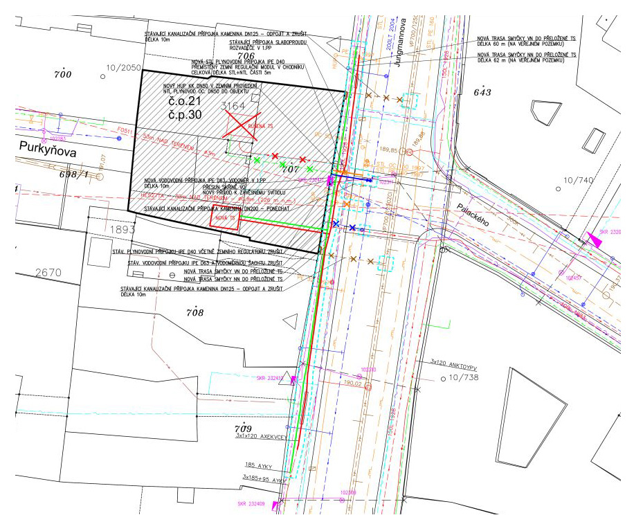 Naše společnost Růžička a partneři s.r.o. zajišťovala technickou koordinaci a prováděcí projektovou dokumentaci všech profesí TZB (kanalizace, vodovod, plynovod, vytápění, vzduchotechnika a chlazení, silnoproud, slaboproud a MaR), nové a překládané přípojky a požárně bezpečnostní řešení. V rámci rekonstrukce objektu bylo nutné vyřešit přesun vestavěné trafostanice 630 kVA v rámci objektu.