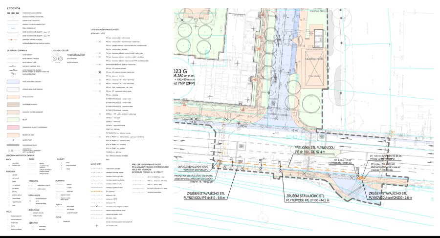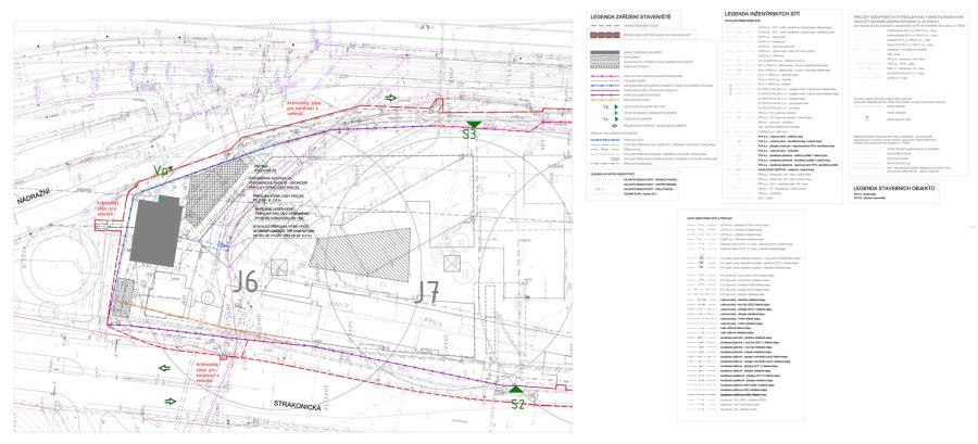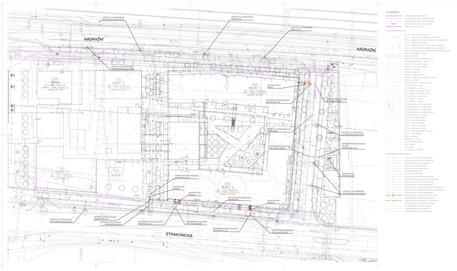 Naše kancelář Růžička a partneři s.r.o. zpracovávala napojení areálu na veřejné inženýrské sítě (vodovod, kanalizaci a plynovod) a s tím související přeložky části veřejných sítí, nové sítě a retenci a akumulaci dešťových vod.