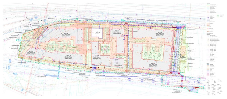 V rámci DÚR byla zpracována Studie principu vytápění a topného zdroje a byly navrženy přeložky a nové trasy veřejné jednotné kanalizace, veřejného pitného vodovodu a veřejného středotlakého plynovodu. Zpracována byla též PD staveništní přípojky vody a staveništní přípojky kanalizace. RaP dodala do souhrnné technické zprávy texty týkající se přípojek vodovodu, kanalizace a plynovodu a dále retence a akumulace srážkových vod a také odlučovače tuků. Areál sestává z objektů A až G, K a ze stávající varny. Tyto objekty byly rozděleny do tří etap: Sever (F, G), Střed (D, E, K, varna) a Jih (A, B, C). Časově postupují projekční práce i výstavba od severu k jihu.